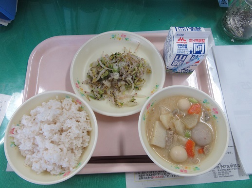 いろどりごはん 牛乳 ブリ照り焼き 雑煮 紅白なます