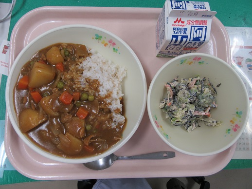 ビーンズカレーライス 牛乳 ツナとブロッコリーのサラダ