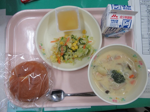 フレンチトースト 牛乳 クラムチャウダー コーンサラダ