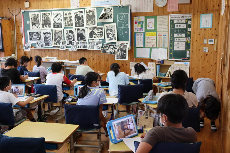 上から(1枚目)1年生 (2枚目)2年生 (3枚目)ZOOMで中学年 (4枚目)ZOOMで高学年