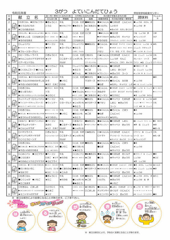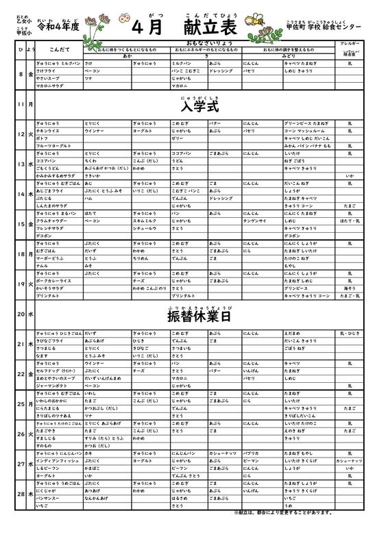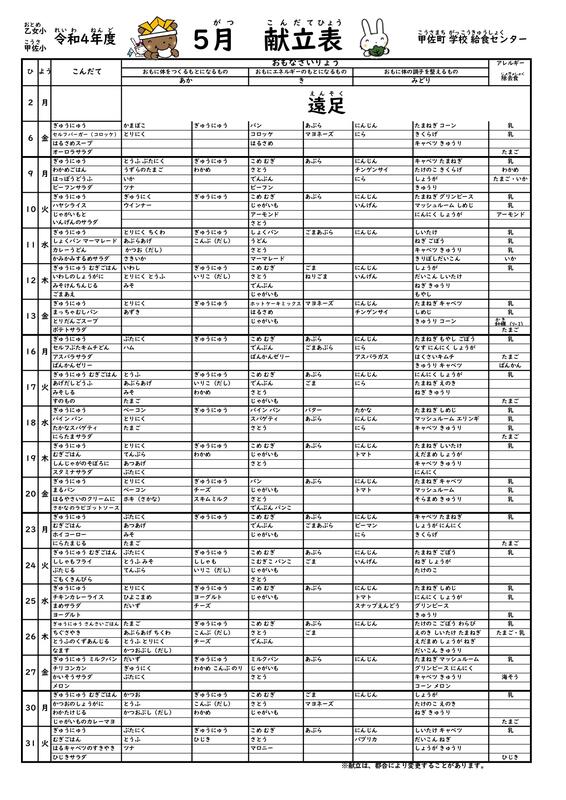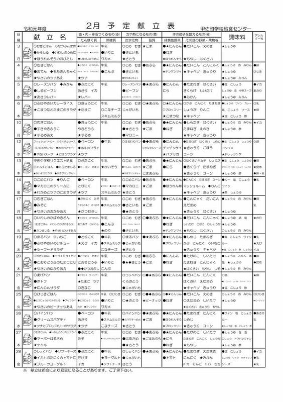 今月の給食献立