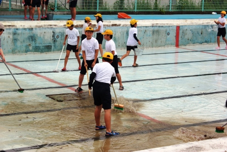 楽しい,楽しいプール掃除になりました。