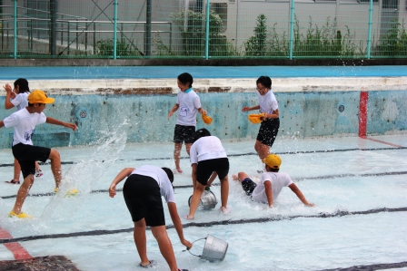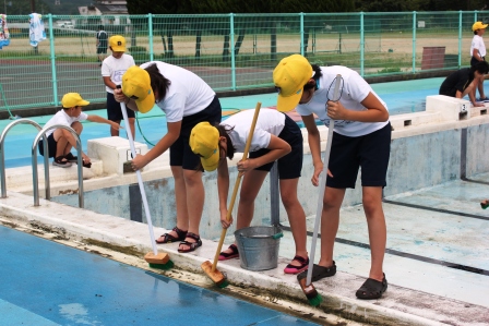4・5・6年生でプールの掃除を行いました。