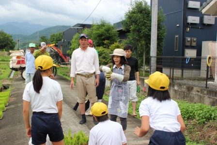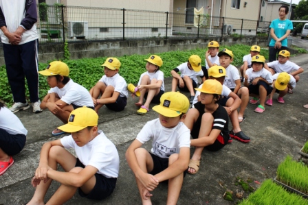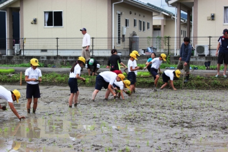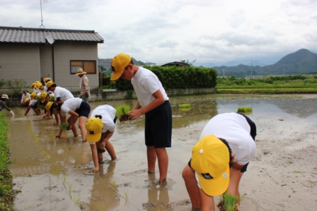 今日は,2・3校時を使って田植えを行いました。