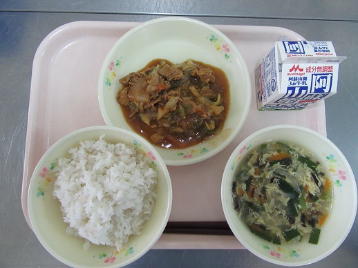 麦ご飯 牛乳 ホイコーロー にら玉汁