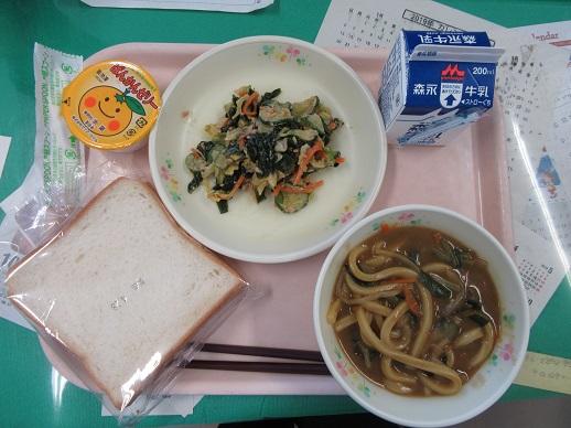 食パン 牛乳 カレーうどん わかめとツナのごまサラダ ばんかんゼリー