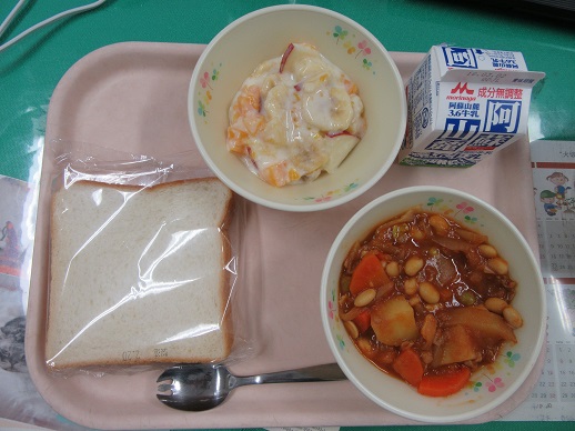 食パン 牛乳 ポークビーンズ フルーツヨーグルト