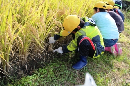 6月に田植えをして,4ヶ月ほどが経ちました。台風にも夏の暑さにも負けることなく大きく生長した稲を刈り取ることで,自然の素晴らしさや自然を大切にする心を確認することができました。