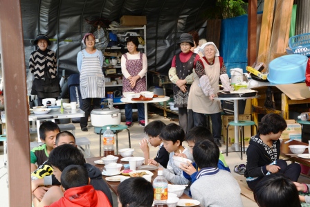 芋掘りをした後,ボランティアの方も含め,みんなで楽しく食事をしました。