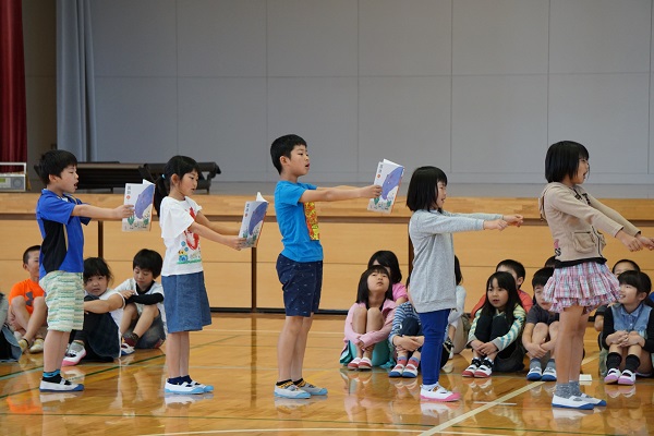 4月19日は、1年生はもちろん、みんなが楽しみにしていた歓迎遠足と1年生を迎える会の日でした。遠足に出発する前に体育館で1年生を迎える会を行いました。1年生は、お兄さんお姉さんの発表をうれしそうに見ていました。