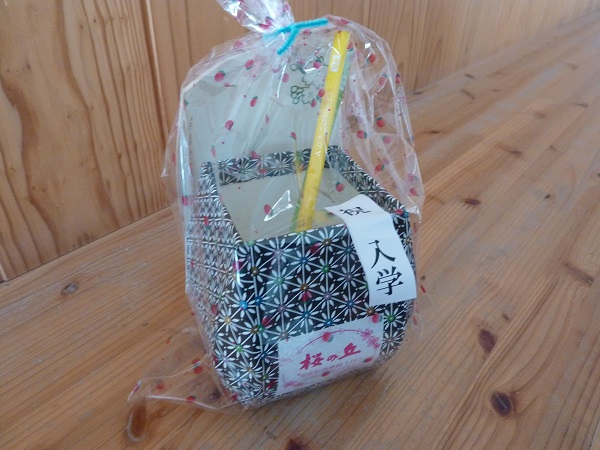 上の写真のペン立てです。「祝 入学」のシールも貼っていただいています。