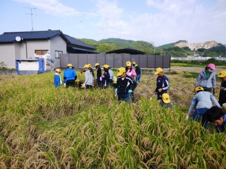 今日の5・6校時に,5年生は,稲刈りをしました。