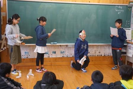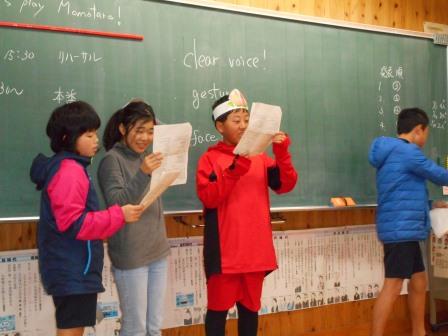 外国語活動では、「桃太郎」の英語劇に取り組みました。