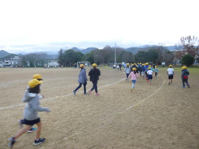 この時期は2月の土曜授業の時に行われる(今年度は2/2)持久走大会を目指し、体力向上のために朝のランニングを行っています。下の写真は今日(1/17)の朝の様子です。