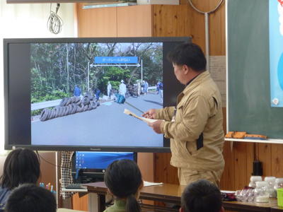 メンバーの中に、本校保護者の方もいらっしゃり、ゴミの量や種類について、不法投棄をなくすことについて、ゴミの分別やリサイクル等について丁寧に説明していただきました。