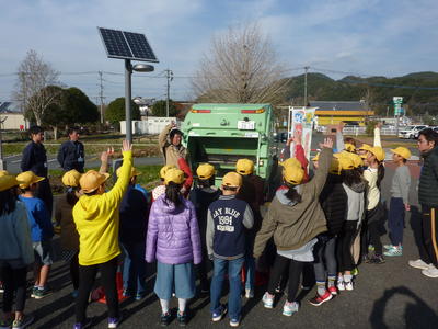 その後、外でパッカー車を実際に見学したり、操作したりさせていただきました。