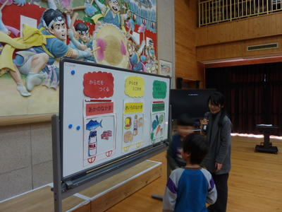 宮﨑先生からの栄養についてのお話もありました。給食〇✕クイズもありました。