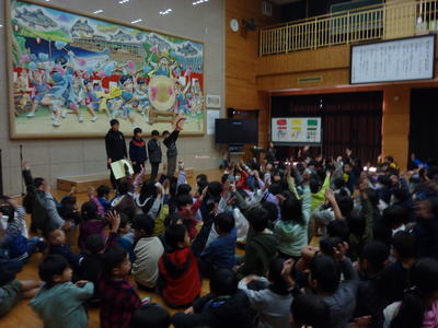本日(1/25)2校時に給食集会が行われました。給食委員会の子どもたちが企画・運営をしてくれた集会でした。
