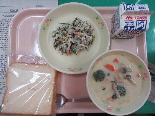 食パン 牛乳 ホワイトシチュー ひじきサラダ