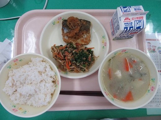 麦ごはん 牛乳 さばのおろしソース 豚汁 ほうれんそうのお浸し