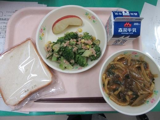 食パン 牛乳 カレーうどん ツナとブロッコリーのサラダ りんご