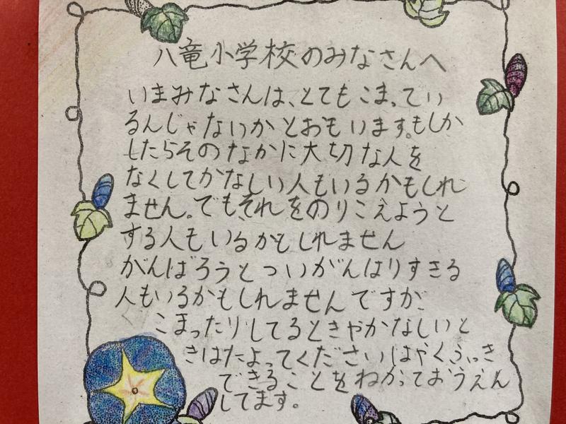 今回の豪雨災害で被害が大きかった、八代の八竜小学校へ、応援メッセージを作成しました。復興への力になれば幸いです。