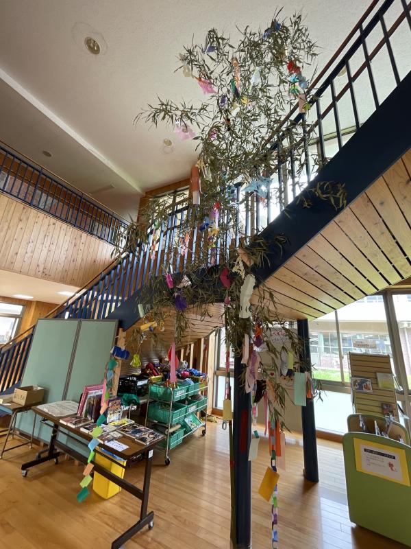 校舎内にいくつか笹を置いていますが、子どもたちの思い思いの願い事が・・・。