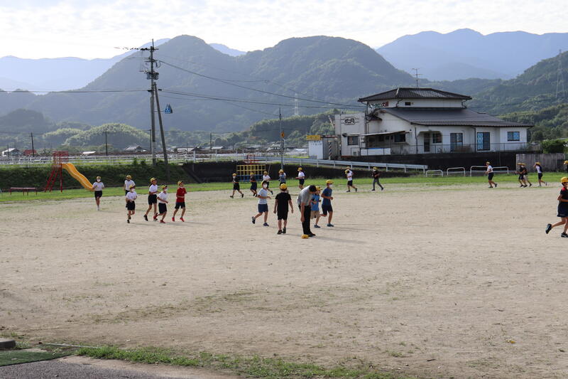下の写真:業間は全校で草取りです。暑い中、黙々と10分間頑張りました。
