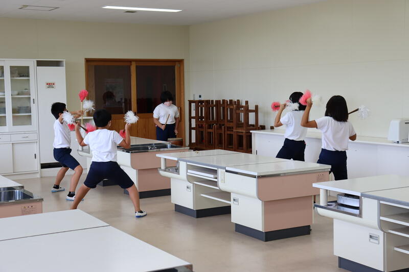 2階の東側では、4年生が廊下と教室で踊ってました。