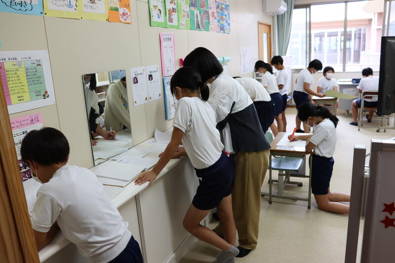 上から(1枚目)1年生 (2枚目)2年生 (3枚目)ZOOMで中学年 (4枚目)ZOOMで高学年