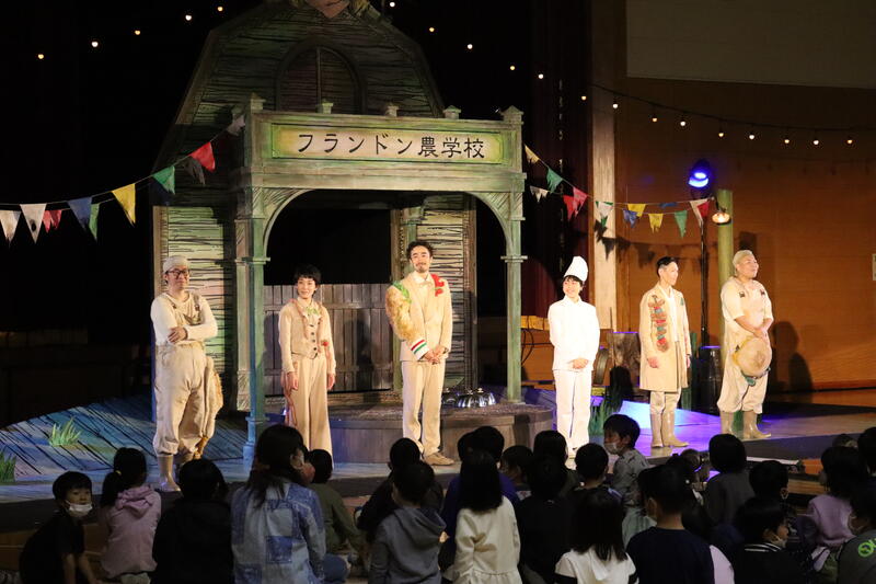 宮沢賢治さん原作の「フランドン農学校の豚」を全校児童で観劇しました。