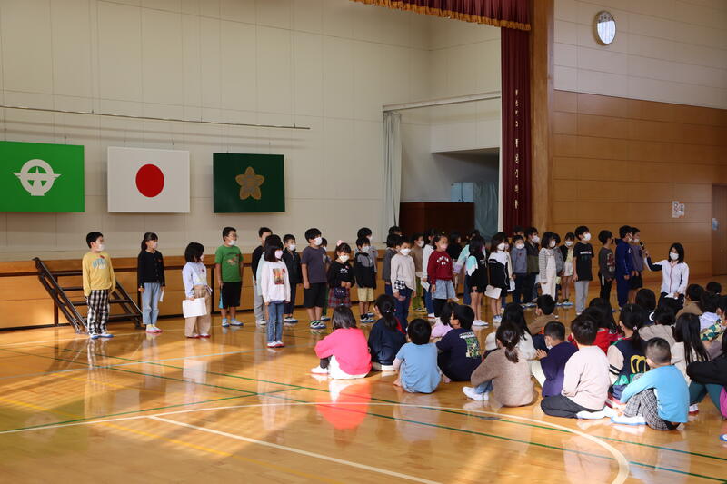今日は校内人権集会でした。これまで学んだ事を1年生、4年生、5年生、執行部が