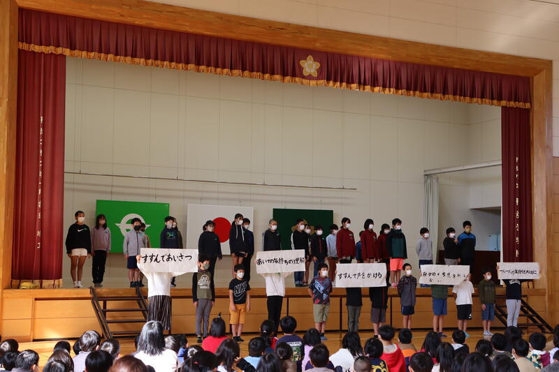発表しました。それぞれの発表に対して、各学年から感想発表もあり、みんなが