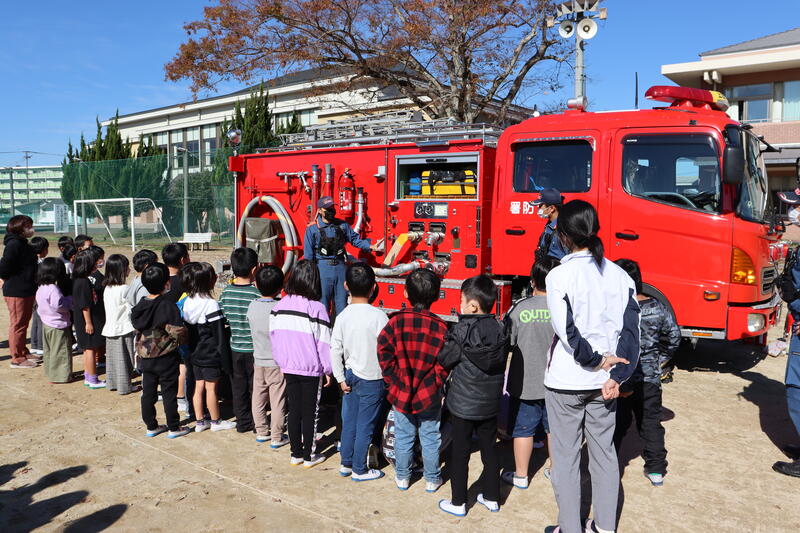 しいことなどたくさん話をして頂きました。最後は消防車の仕組みや設備品を聞き、驚いた子供たちでし