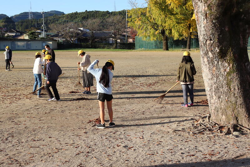 (3枚目)甲佐小は秋になると大量の落ち葉が発生しますが、子供たちのボランティア活動で環境が保たれています。