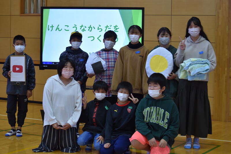 写真は、発表の練習や道具づくりなど、何日間も取り組んできた保健委員会のメンバーです。