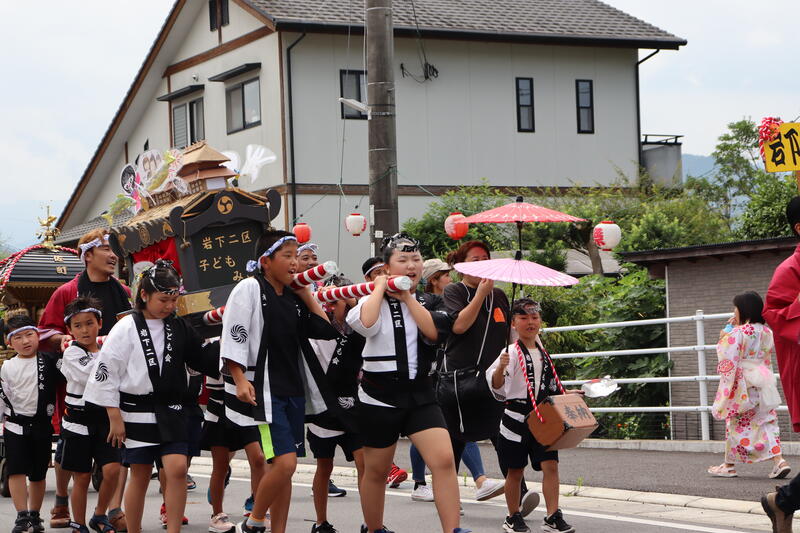 今日は鮎まつりでした。子供神輿に6つの地区が参加しました。