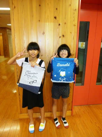 5年生は,5・6校時を利用してナップザックを作成しました。
