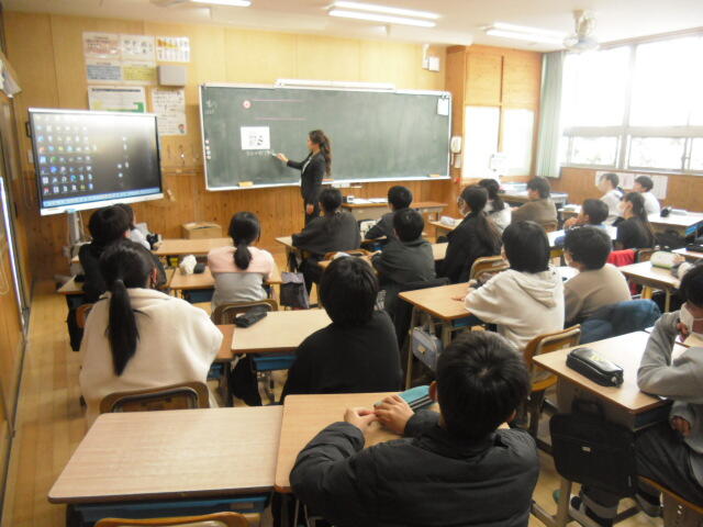 本校の外国語専科による3年3組の外国語活動の研究授業を行いました。クイズ作りの学習をしました。