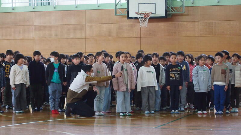 まるばつクイズ、1~5年生の出し物、6年生の歌などを行いました。