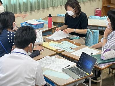 今回は、先生方一人一人が設定した「個人研究テーマ」について前期前半の実践を振り返り作成したレポートをもとに、グループごとのワークショップを行いました。