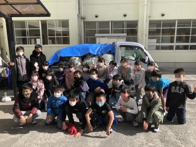 5,6年生のボランティア委員会の子どもたちで軽トラックに積み込み作業をしました。