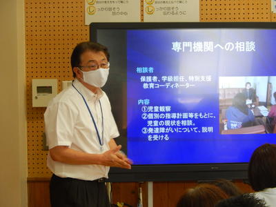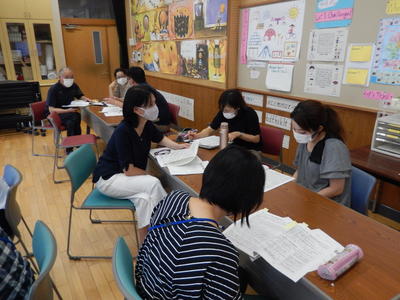 放課後の校内研修では、まずはじめに特別支援学級担任から“特別な支援”についての話があり、支援学級で実践されている様々な支援について教えて頂きました。