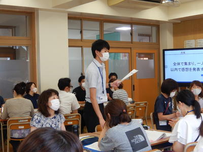 最後に、各グループで話題になったことを全体の場で発表し合い、共通理解を図りました。