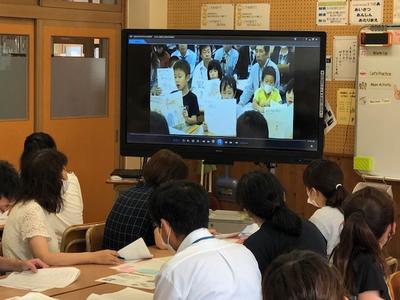先日2年1組で国語の授業を撮影し、今日の研修の中で全職員でその映像を見ました。