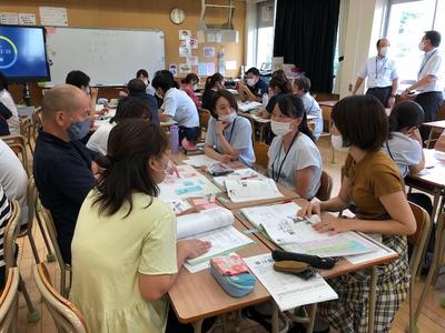 その後、各授業グループに分かれて研究会が行われました。授業を参観された先生方からの気づきを出し合い、支援学級や交流学級での指導がよりよくなるための方法を考えていきました。