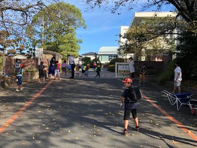 今日は2年4組、2年5組、3年1組、3年2組の保護者の方々が正門や裏門、通学路などでご協力頂きました。子ども達は元気に登校してくれました。