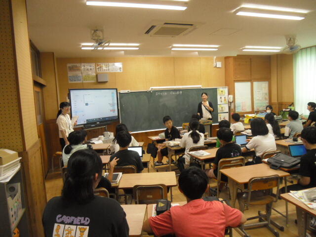 6年生の英語の学習の時間、合志中学校の英語の先生と一緒に学習をしました。