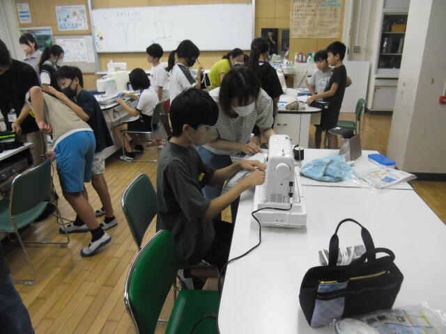 先週に引き続き、ナップザック作りを地域コーディネーターやボランティアの協力を得て行っています。