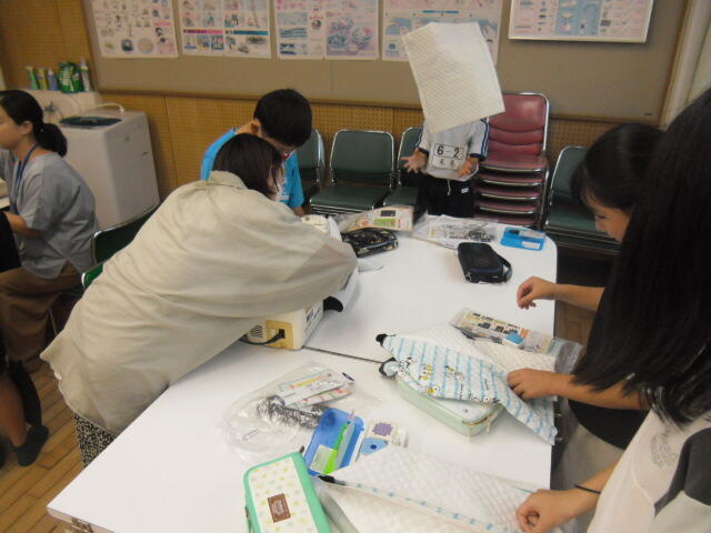 菊池・山鹿地区の先生が飛び込みで本校の5年生、6年生の学級で家庭科の公開授業を行われました。